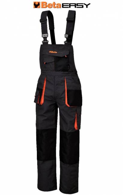 SALOPETTE DA LAVORO IN T/C CANVAS 260 g, INSERTI IN OXFORD, GRIGIO